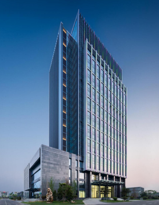 2017年作為專業負責人、結構設計人,設計完成山東省救災物資儲備管理中心救災物資捐贈接收及儲備綜合用房:總建筑面積3.38萬平方米,地下1層、地上二十一層,總高度91.90米。本工程位于經十東路南側,面對開闊的景觀大道,成為周邊區域的標志性建筑。結構專業設計采用鋼筋混凝土框架-剪力墻結構及大型鋼結構玻璃和石材幕墻,充分體現了高層建筑的現代美感。