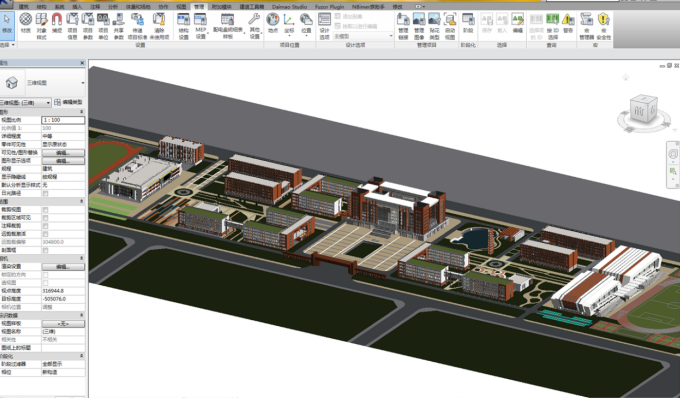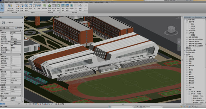 本項目為寧津縣第一中學校區新建項目,學校位于寧津縣南部新城中心,設計規模為120班高中教學,分為教學實驗、圖書信息與行政辦公、食堂后勤、住宿、風雨操場和教師公寓6大功能組團。為了保障設計質量并提高出圖效率,該項目利用BIM技術進行設計并指導施工。