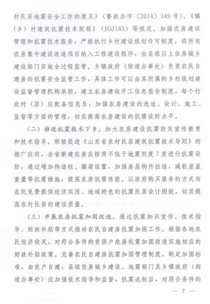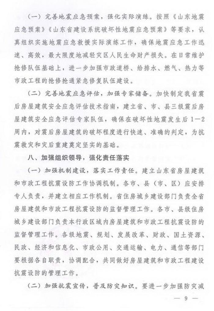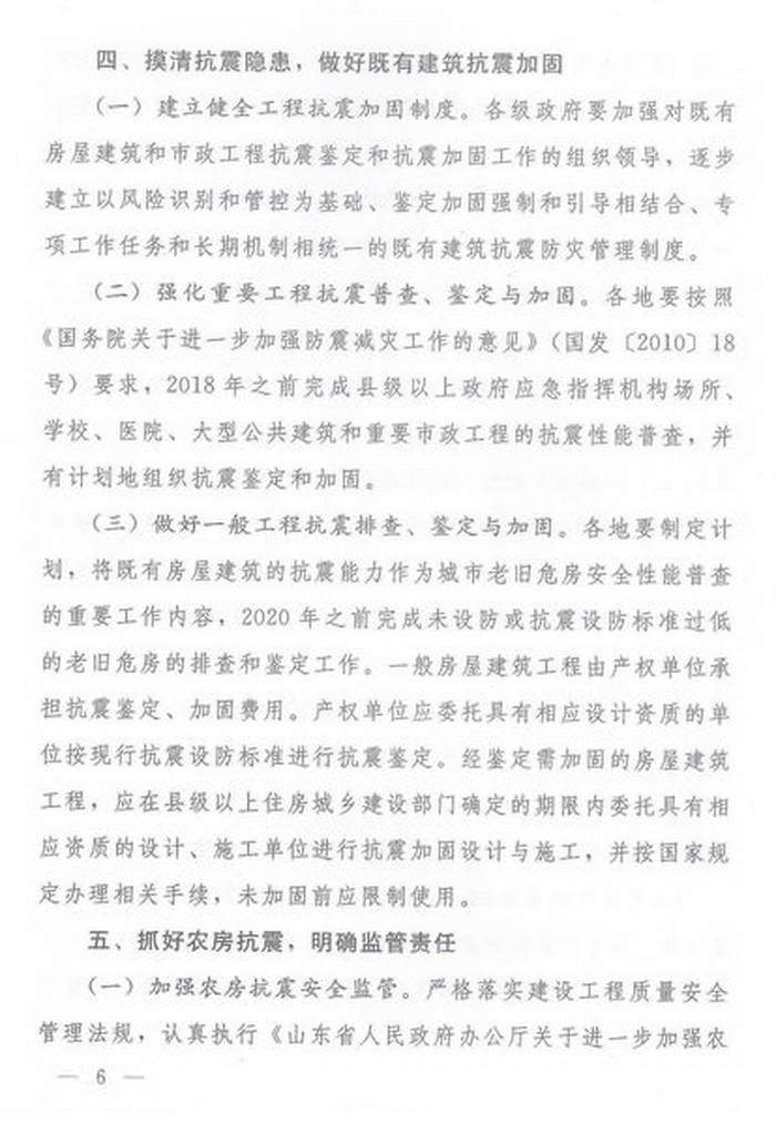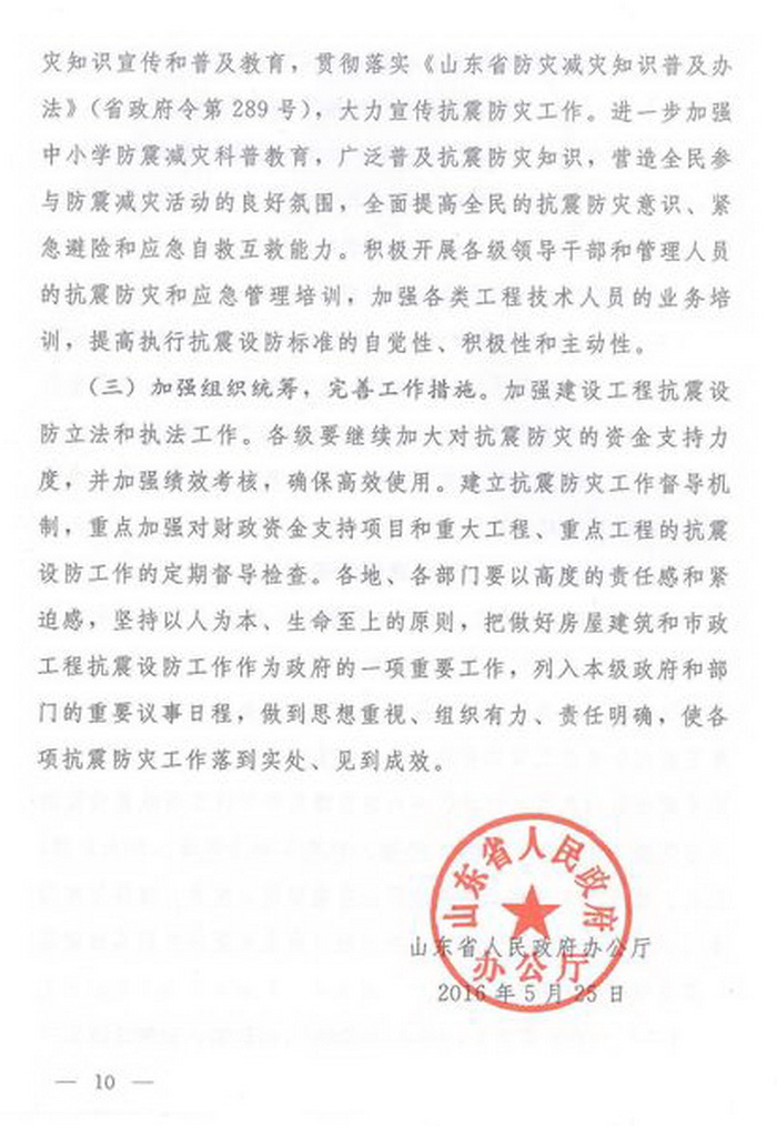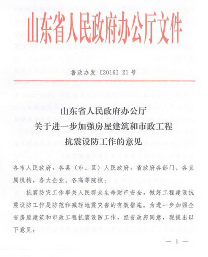山東省人民政府辦公廳關于進一步加強房屋建筑和市政工程抗震設防工作的意見