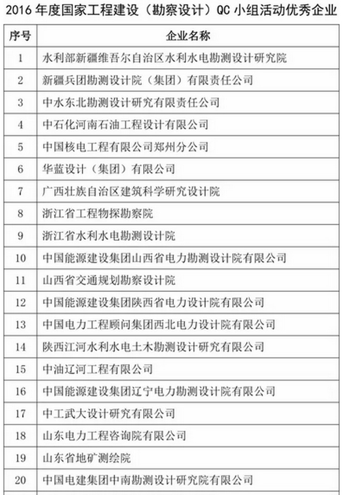 2016年度國家工程建設(勘察設計)優秀QC小組成果發表會及表彰會召開