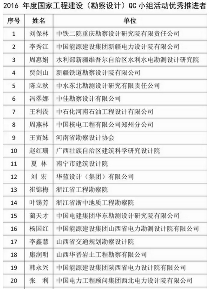 此次評選中,共有50個QC小組獲得一等獎,134個QC小組獲得二等獎,97個QC小組獲得三等獎。其中,來自中鐵工程設計咨詢集團有限公司等單位的10個QC小組被推薦為2016年全國優秀QC小組。此外,35家工程勘察設計單位獲評2016年度國家工程建設(勘察設計)QC小組活動優秀企業,50位個人獲評QC小組活動優秀推進者。