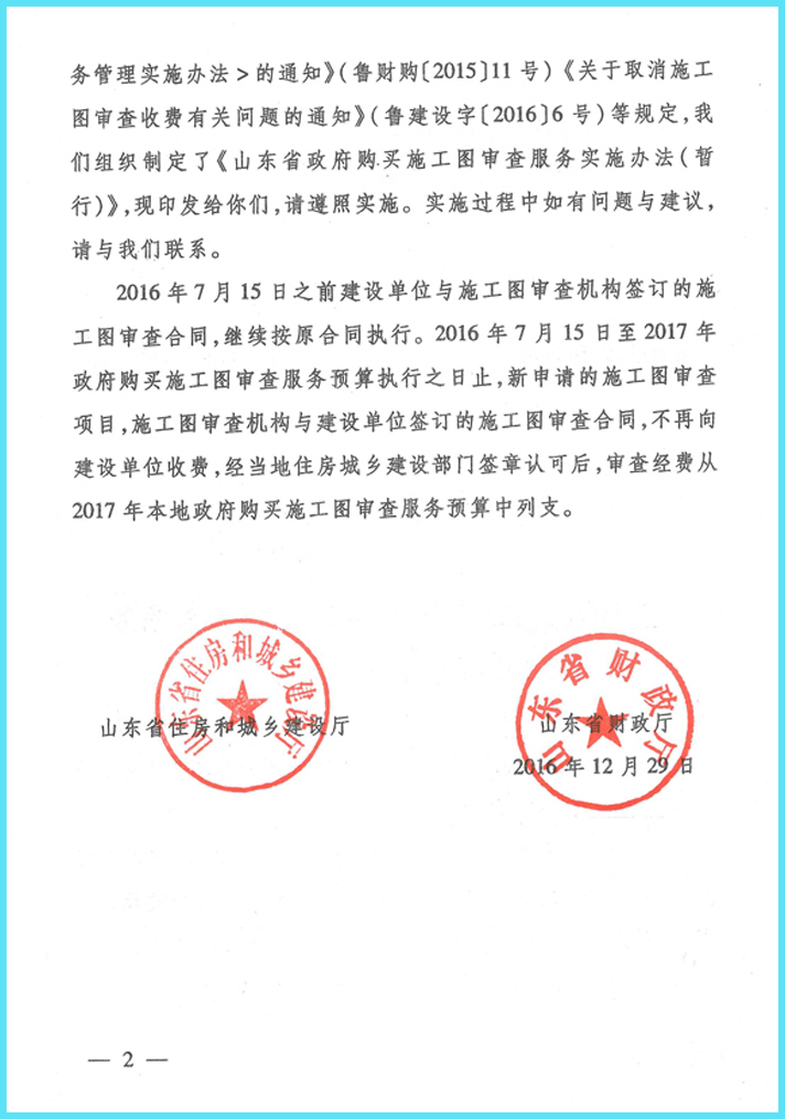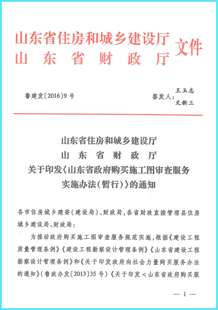 山東省住房和城鄉建設廳 山東省財政廳關于印發《山東省政府購買施工圖審查服務實施辦法(暫行)》的通知