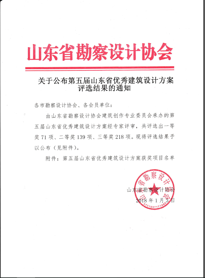 關于公布第五屆山東省優秀建筑設計方案評選結果的通知