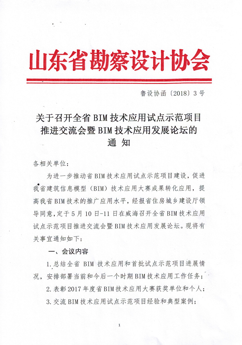 關于召開全省BIM技術應用試點示范項目推進交流會暨BIM技術應用發展論壇的 通 知
