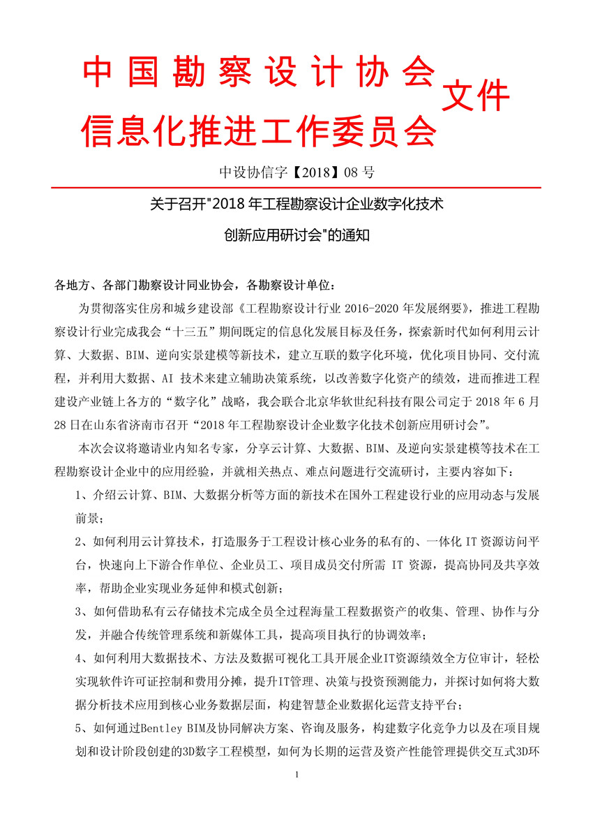 關于召開"2018年工程勘察設計企業數字化技術創新應用研討會”的通知