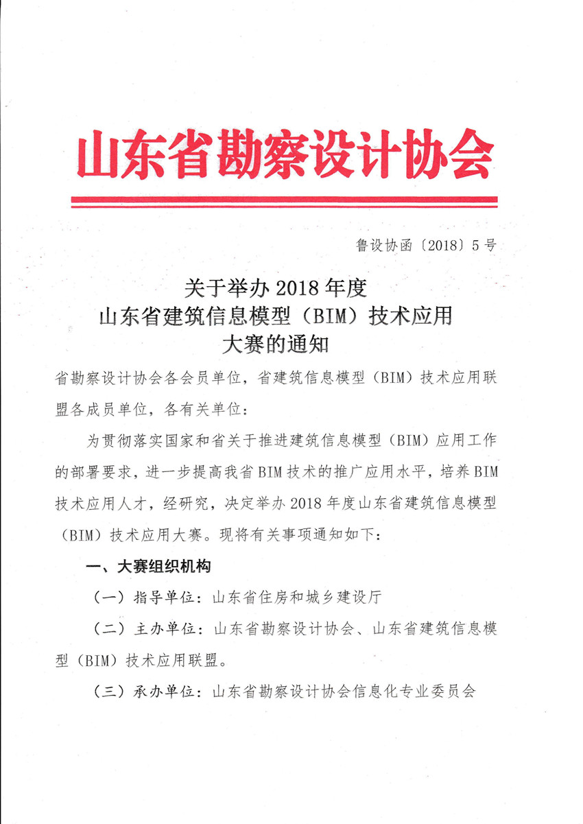 關于舉辦2018年度 山東省建筑信息模型(BIM)技術應用 大賽的通知