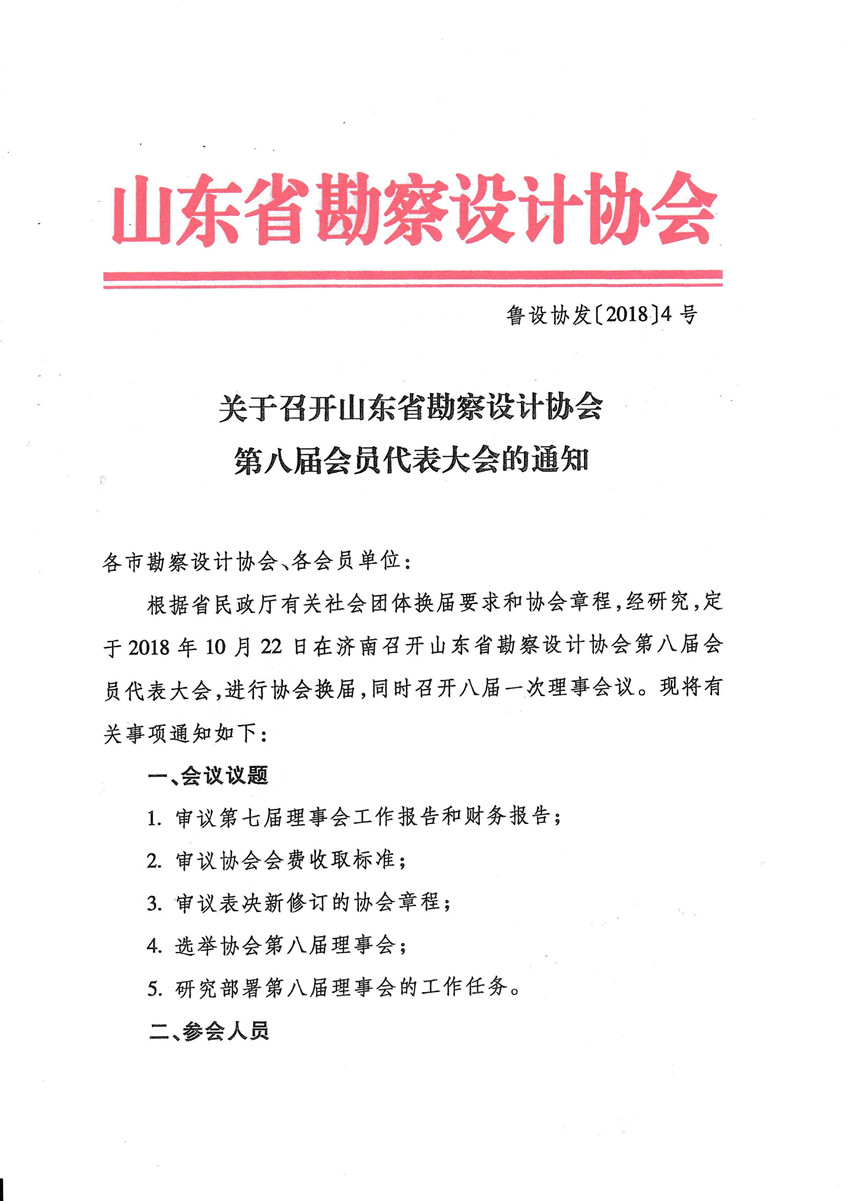 關于召開山東省勘察設計協會 第八屆會員代表大會的通知