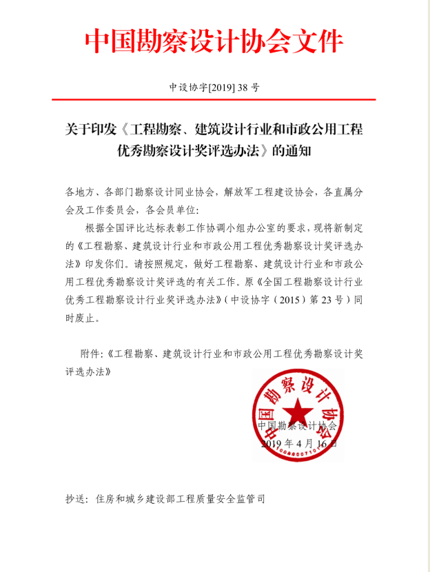 關于印發《工程勘察設計、建筑設計行業和市政公用工程優秀勘察設計獎評選辦法》的通知
