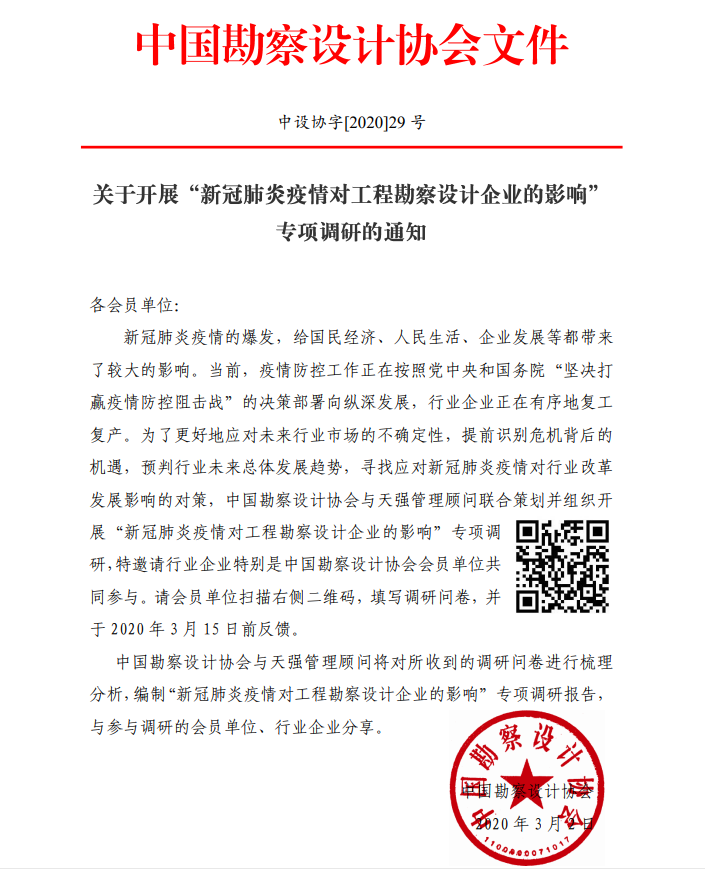 《關于開展“新冠肺炎疫情對工程勘察設計企業的影響”專項調研的通知》