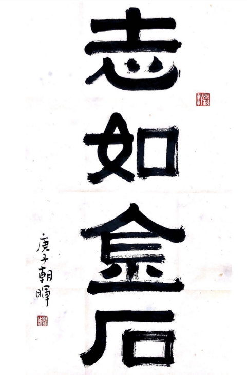 除了繪畫,侯朝暉還酷愛書法,看到這么多“最美逆行者”奮戰在抗疫一線,他寫下“志如金石”四個字,贊美這些最可愛的人。