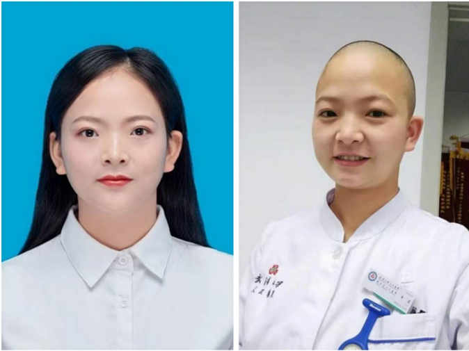 畫中的這位光頭女護士名叫單霞,是武漢大學人民醫院東院區的一名護士。為了避免交叉感染,節約穿防護服的時間,單霞毅然剃光了及腰長發,投入到一線工作中去。“頭發沒有了可以再長,現在首要問題是保護好自己的同時,盡力量去救更多人。”