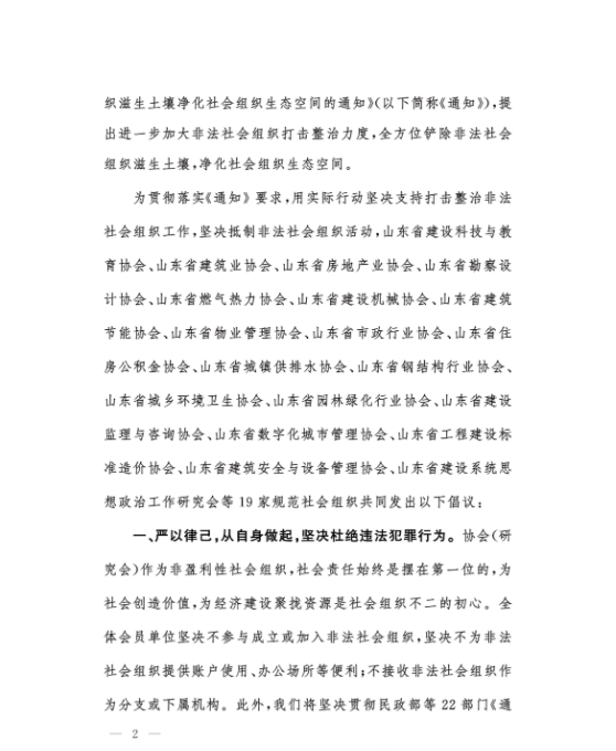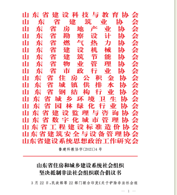【聯合倡議】山東省住房和城鄉建設系統社會組織堅決抵制非法社會組織聯合倡議書