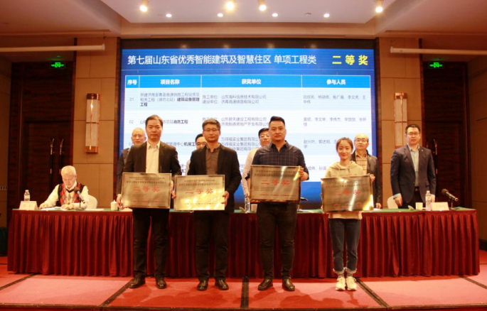 隨后舉行了頒獎典禮,張釗秘書長宣讀了《關于公布第七屆山東省優秀智能建筑及智慧住區評選結果的通知》,獲獎單位分批上臺領獎。