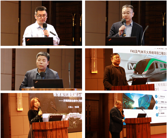 技術交流環節,山東省建筑設計研究院有限公司六分院電氣主任任立全、同方德誠(山東)科技股份公司總經理翟兆國、山東大衛國際建筑設計有限公司智能設計分院院長張濤、山東宏雁電子系統工程有限公司技術總工譚永利、同圓設計集團智能化設計研究所所長劉志燕、山東華埠特克智能機電工程有限公司副總經理廉頗等分享交流了獲金獎、一等獎的項目。