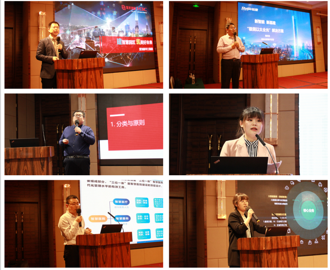 新華三山東代表處網絡產品技術總監徐學征、銳捷網絡智能建筑技術總監武亦農、山東亞華電子股份有限公司副總經理唐澤遠、Itc公司山東辦事處主管黃穎、來邦科技股份有限公司醫院產品總監黃林、??低暆戏止局腔劢ㄖ袖N負責人宮佳鈺等產品企業代表紛紛上臺發言,介紹了獲獎項目中的主要先進產品和解決方案。