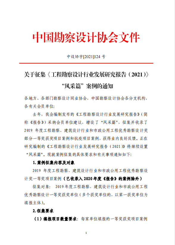 關于征集《工程勘察設計行業發展研究報告(2021)“風采篇”案例的通知》