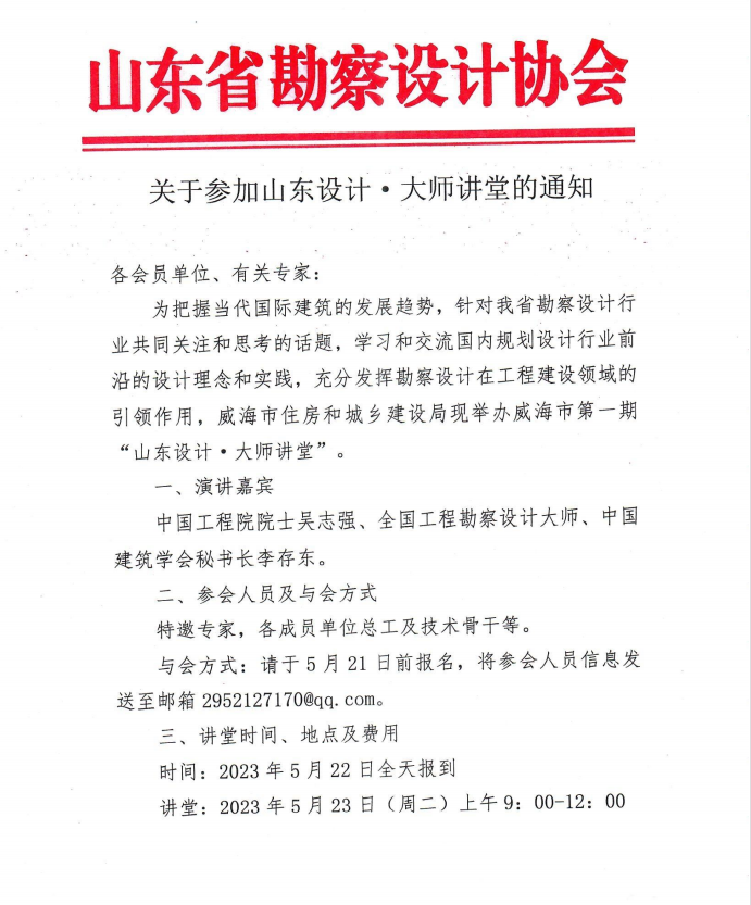 關于參加山東設計?大師講堂的通知