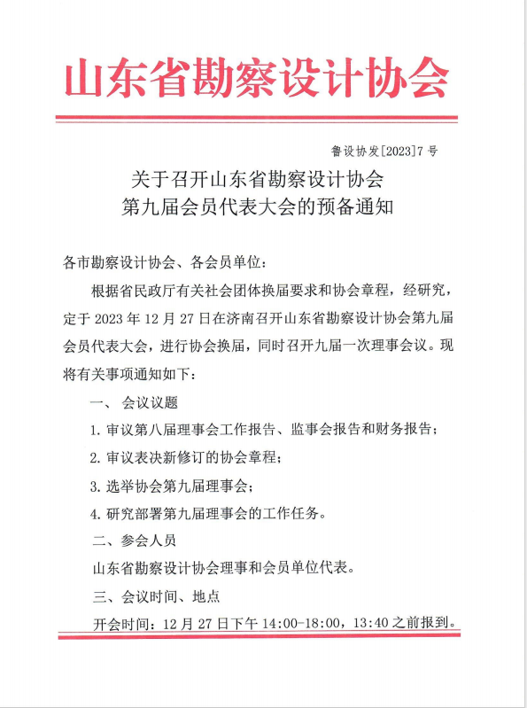 附件:《關于召開山東省勘察設計協會第九屆會員代表大會的預備通知》