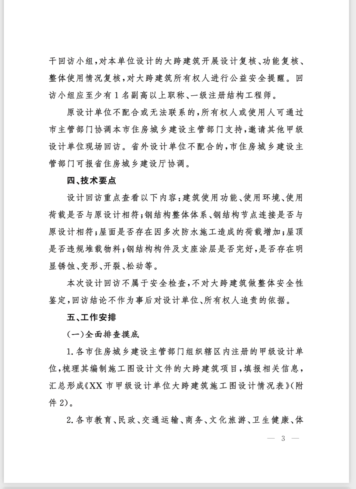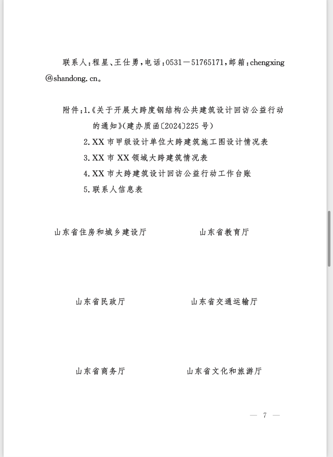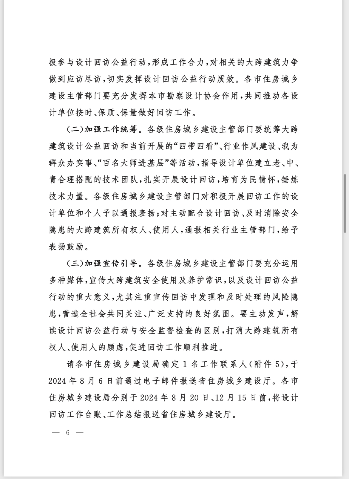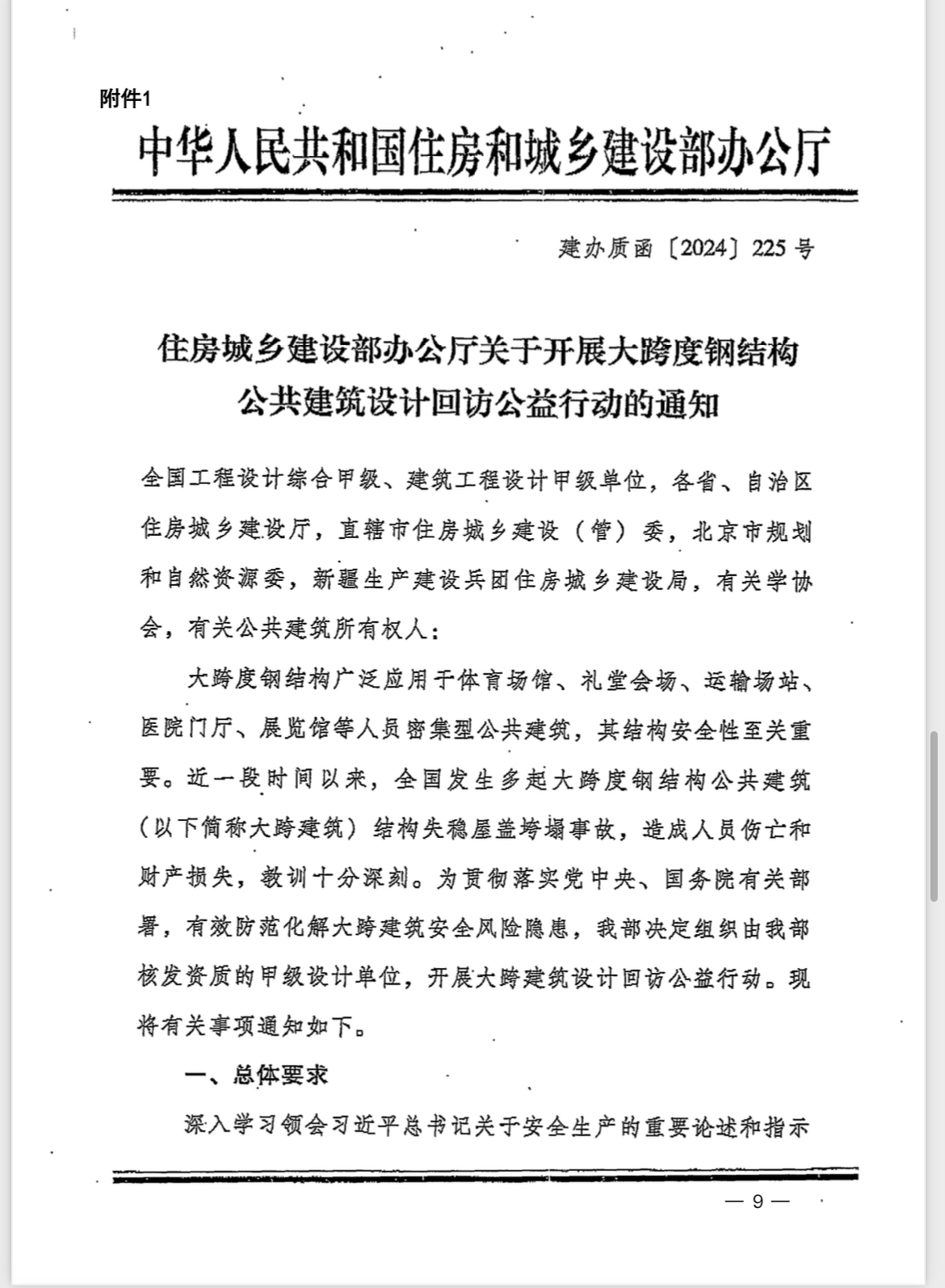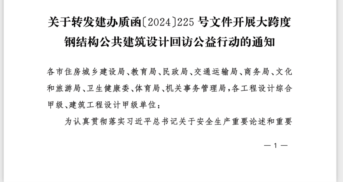 關于轉發建辦質函[2024]225號文件開展大跨度鋼結構公共建筑設計回訪公益行動的通知