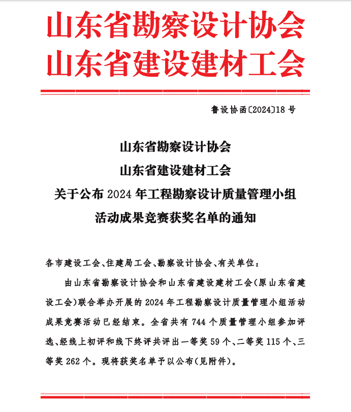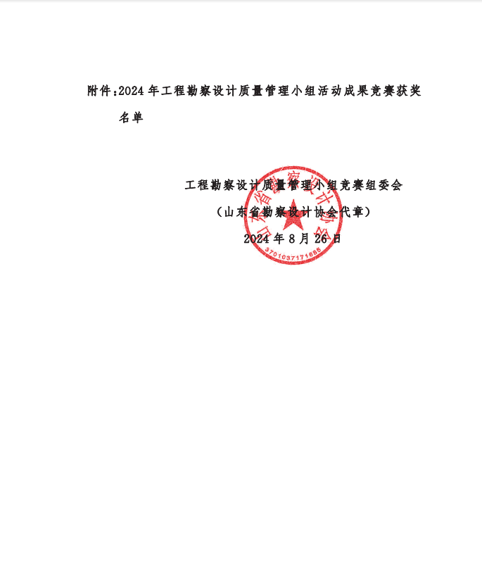 附件:關于公布2024年工程勘察設計質量 管理小組活動成果競賽獲獎名單的通知