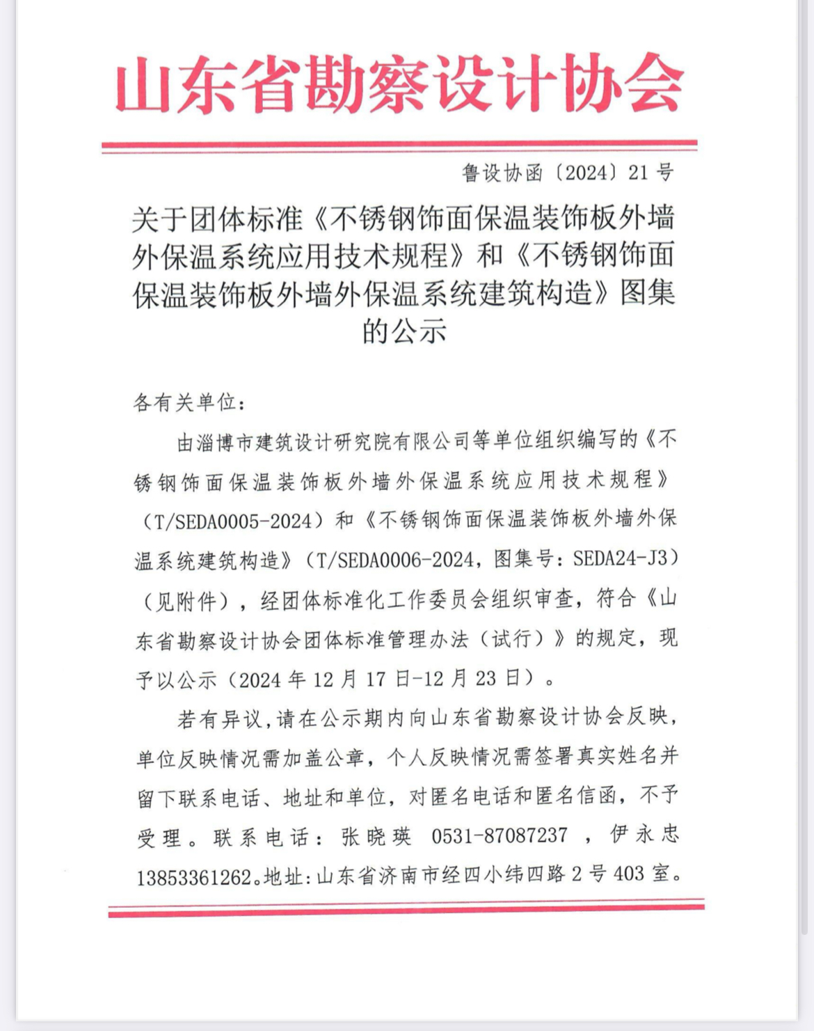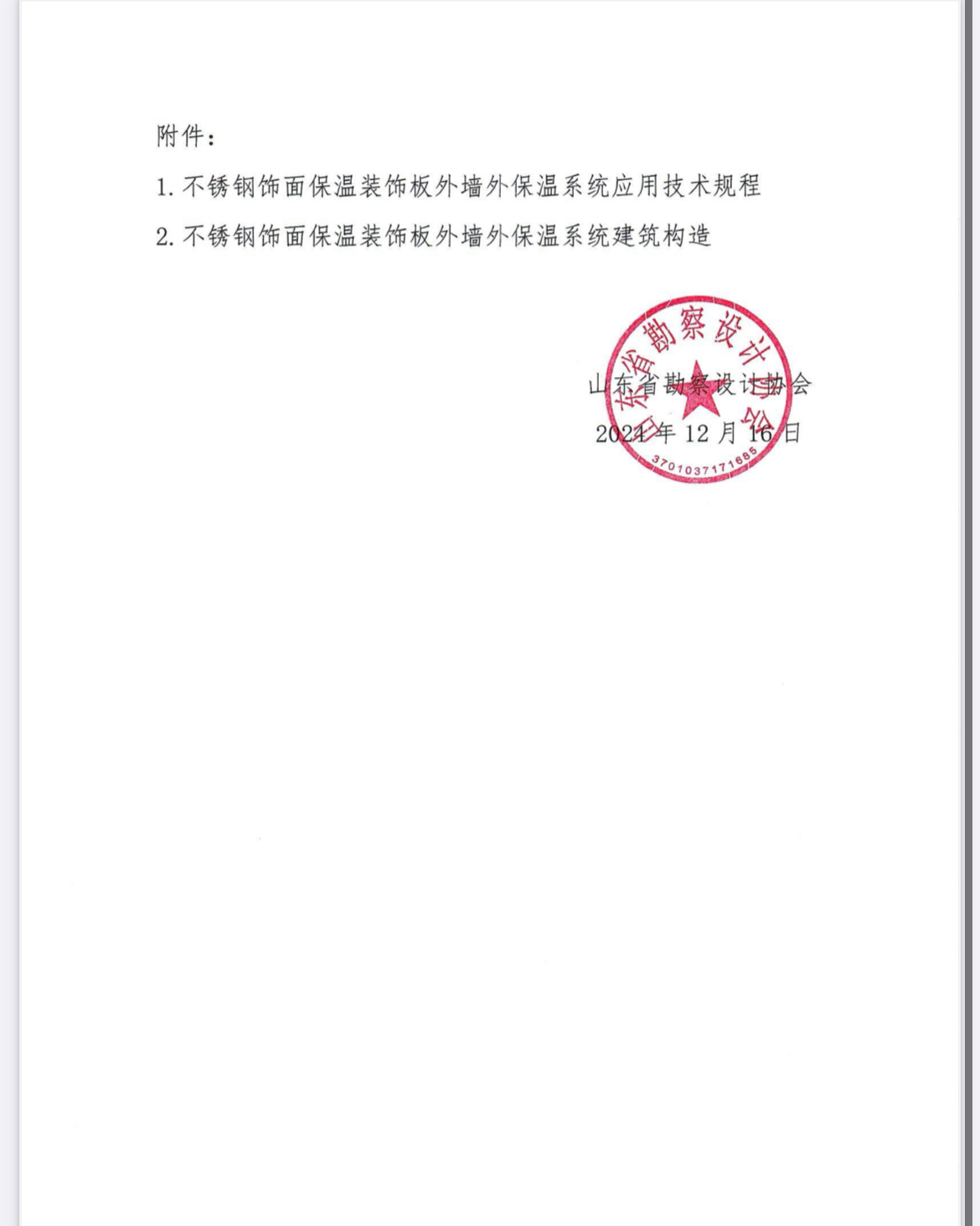 附件:關于團體標準《不銹鋼飾面保溫裝飾板外墻外保溫系統應用技術規程》和《不銹鋼飾面保溫裝飾板外墻外保溫系統建筑構造》圖集