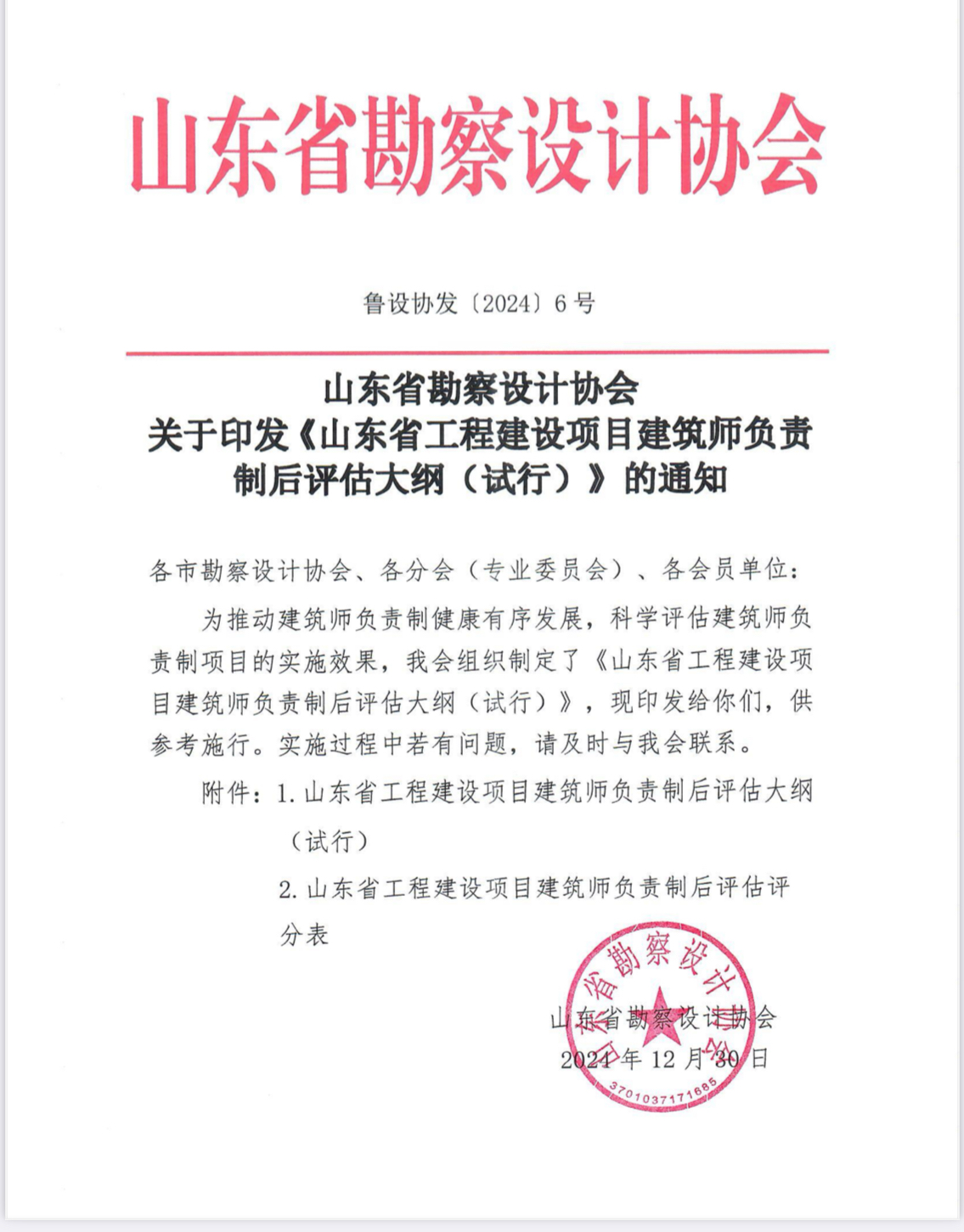 附件:山東省勘察設計協會 關于印發《山東省工程建設項目建筑師負責制后評估大綱(試行)》的通知