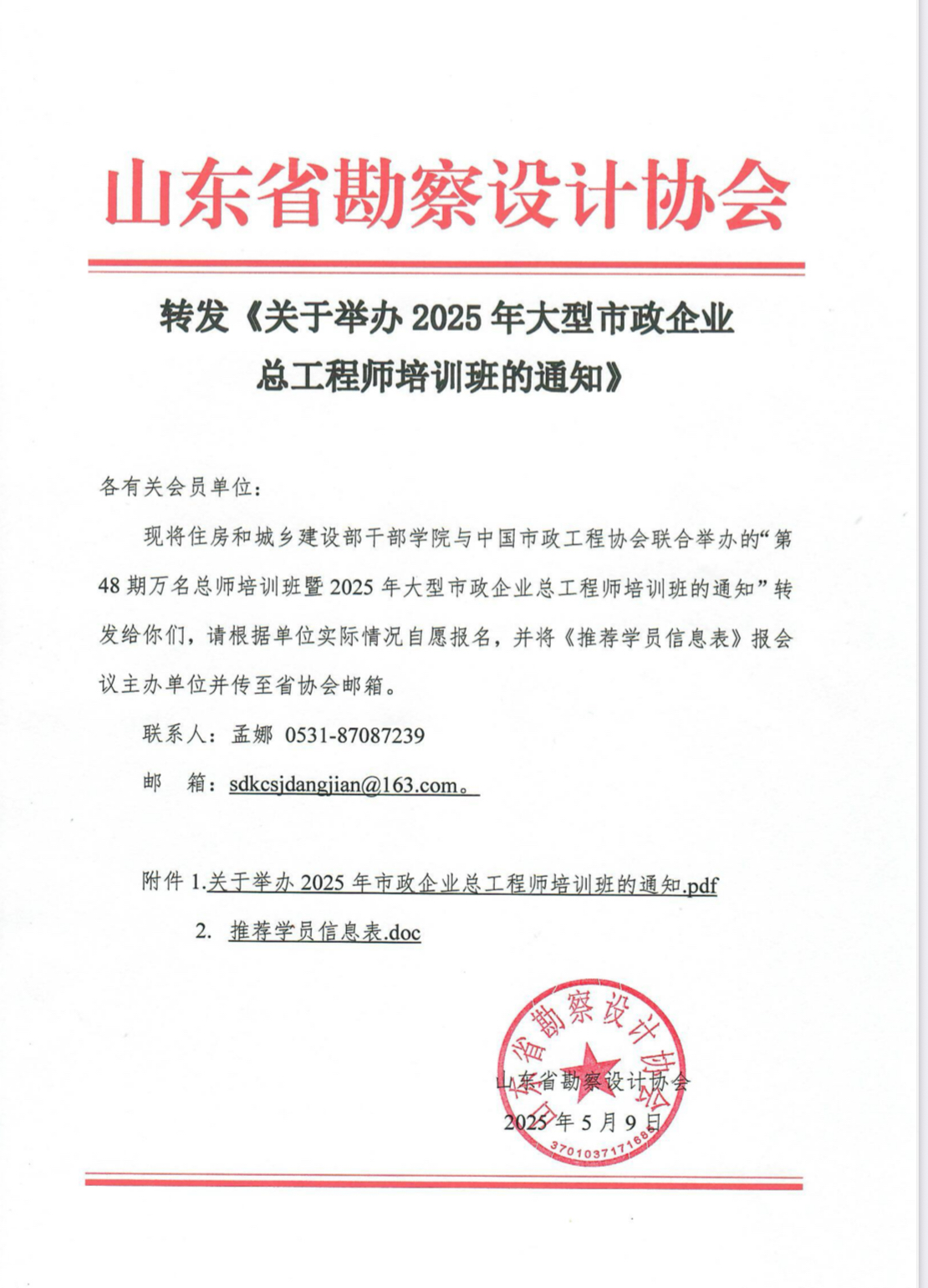 附件:1.關于舉辦2025年市政企業總工程師培訓班的通知