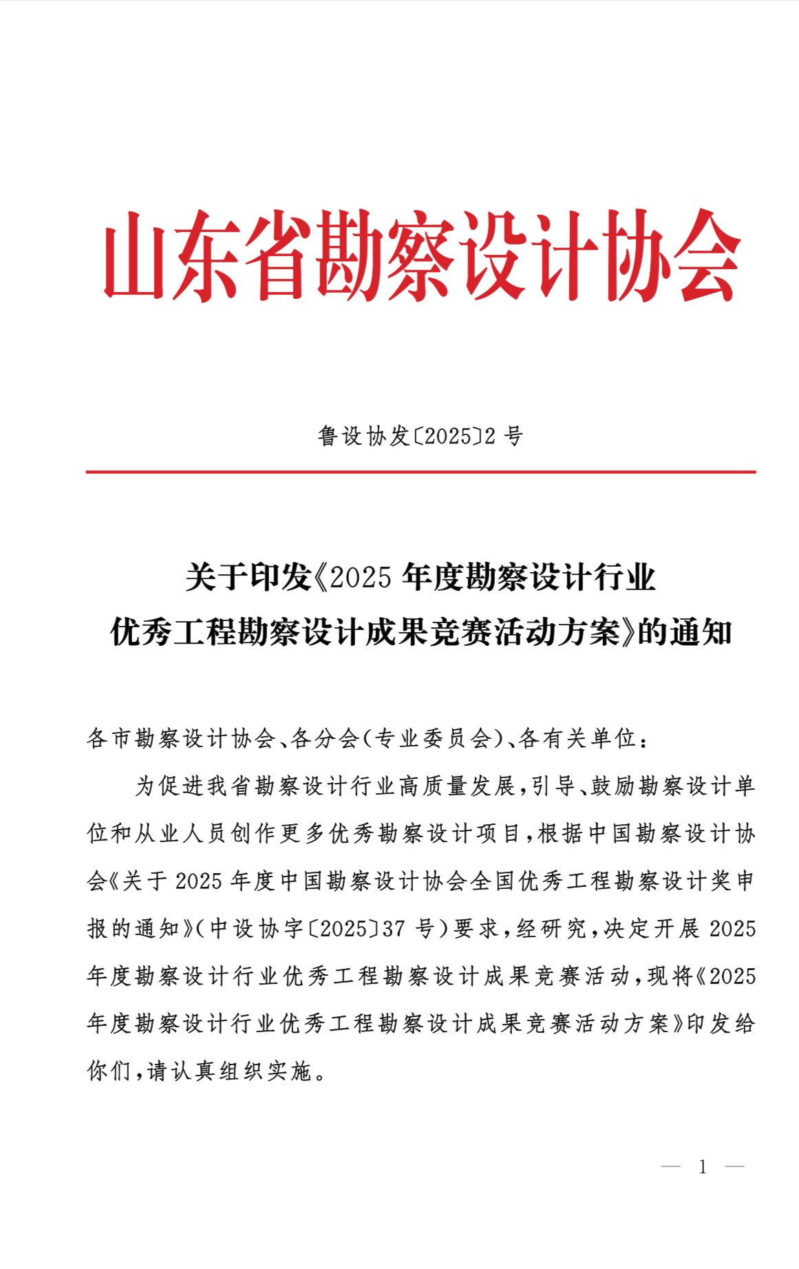 附件:1.關于印發《2025年度勘察設計行業優秀工程勘察設計成果競賽活動方案》的通知