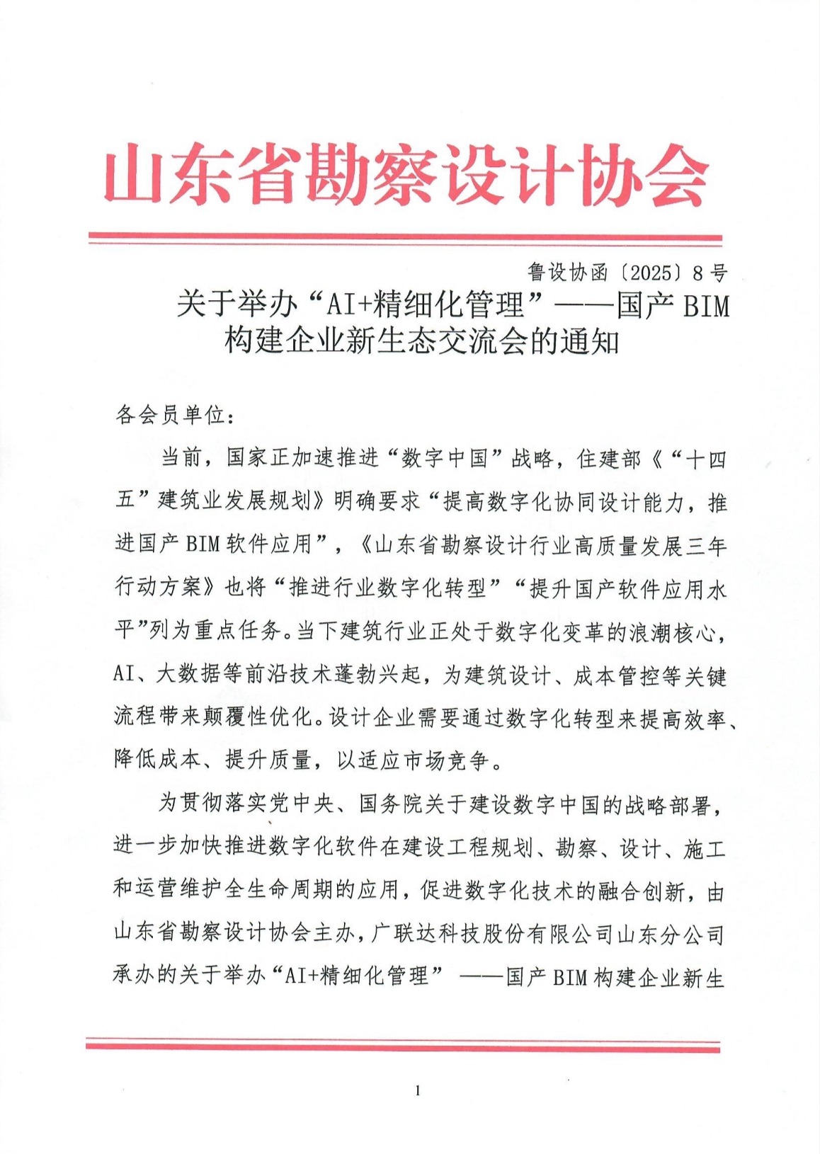 附件:1.關于舉辦“AI+精細化管理”——國產BIM構建企業新生態交流會的通知