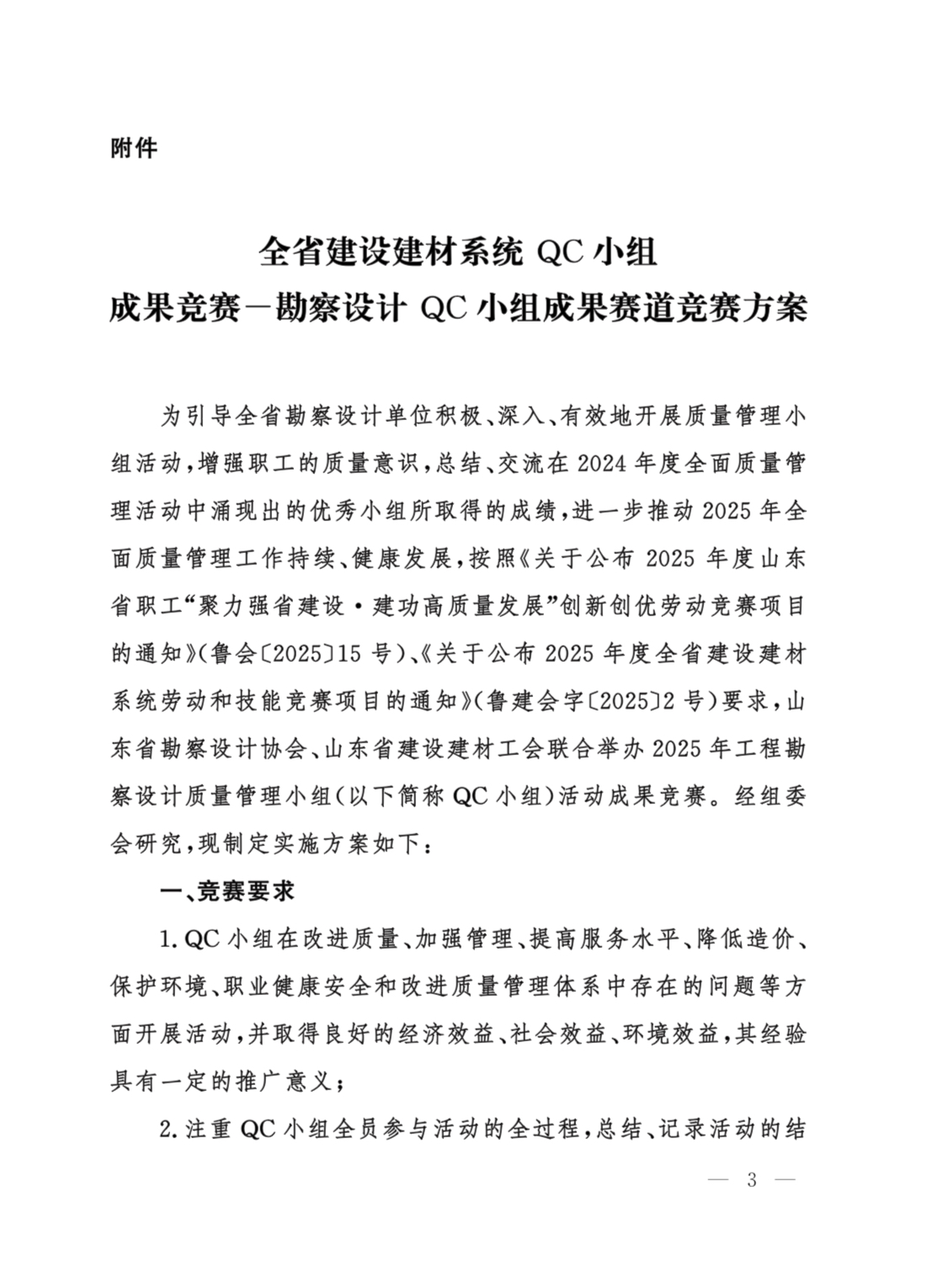 關于印發全省建設建材系統 QC小組成果競賽-勘察設計 QC小組成果賽道競賽方案的通知