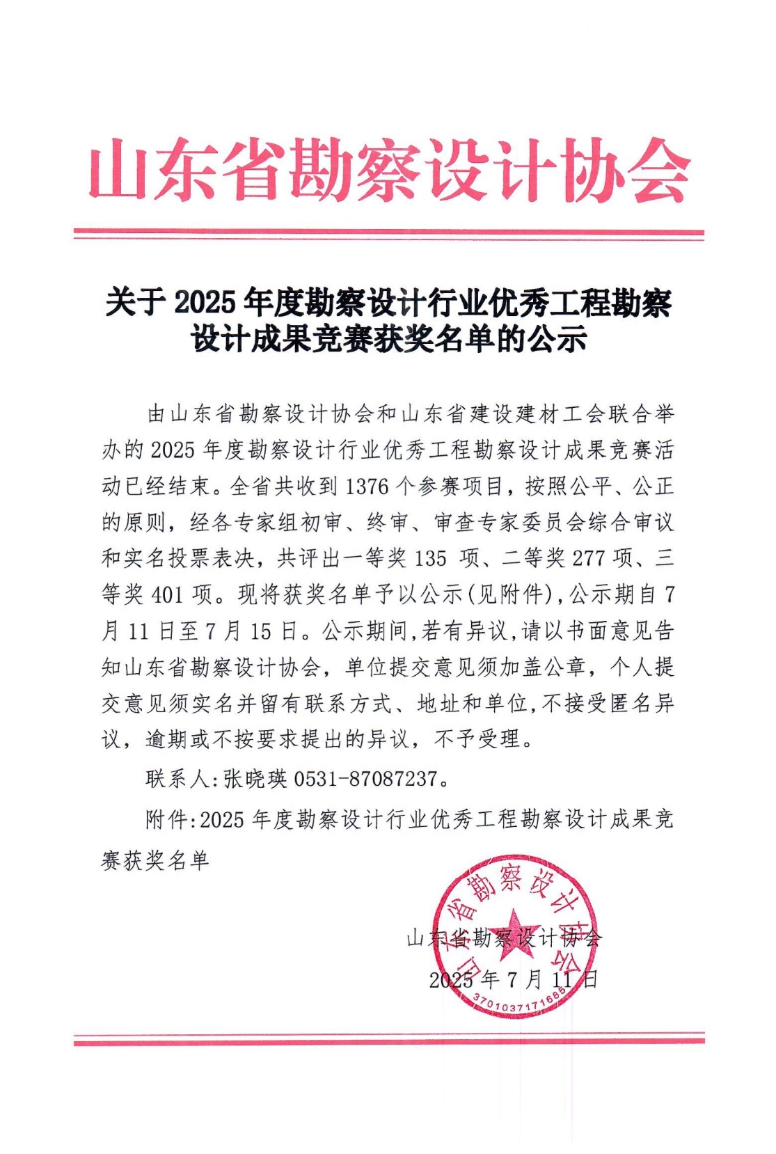 附件:2025年度勘察設計行業優秀工程勘察設計成果競賽獲獎通知及名單