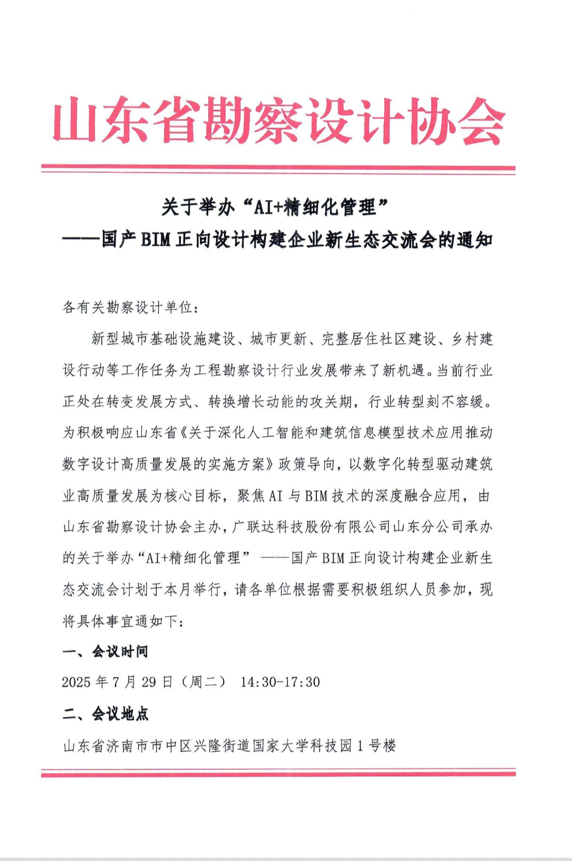 關于舉辦“AI+精細化管理”——國產BIM正向設計構建企業新生態交流會的通知