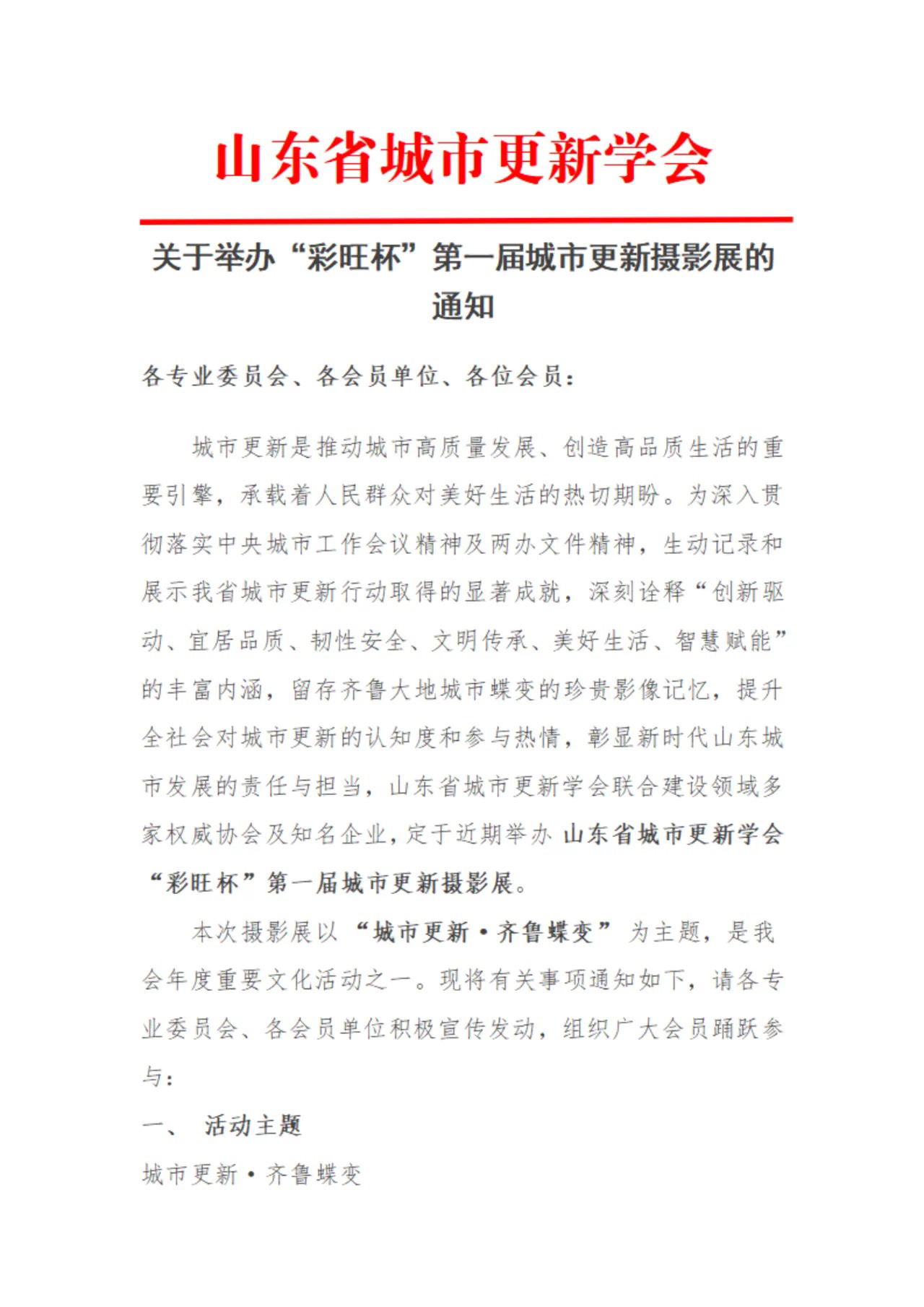 1. 關于舉辦“彩旺杯”第一屆城市更新攝影展的通知