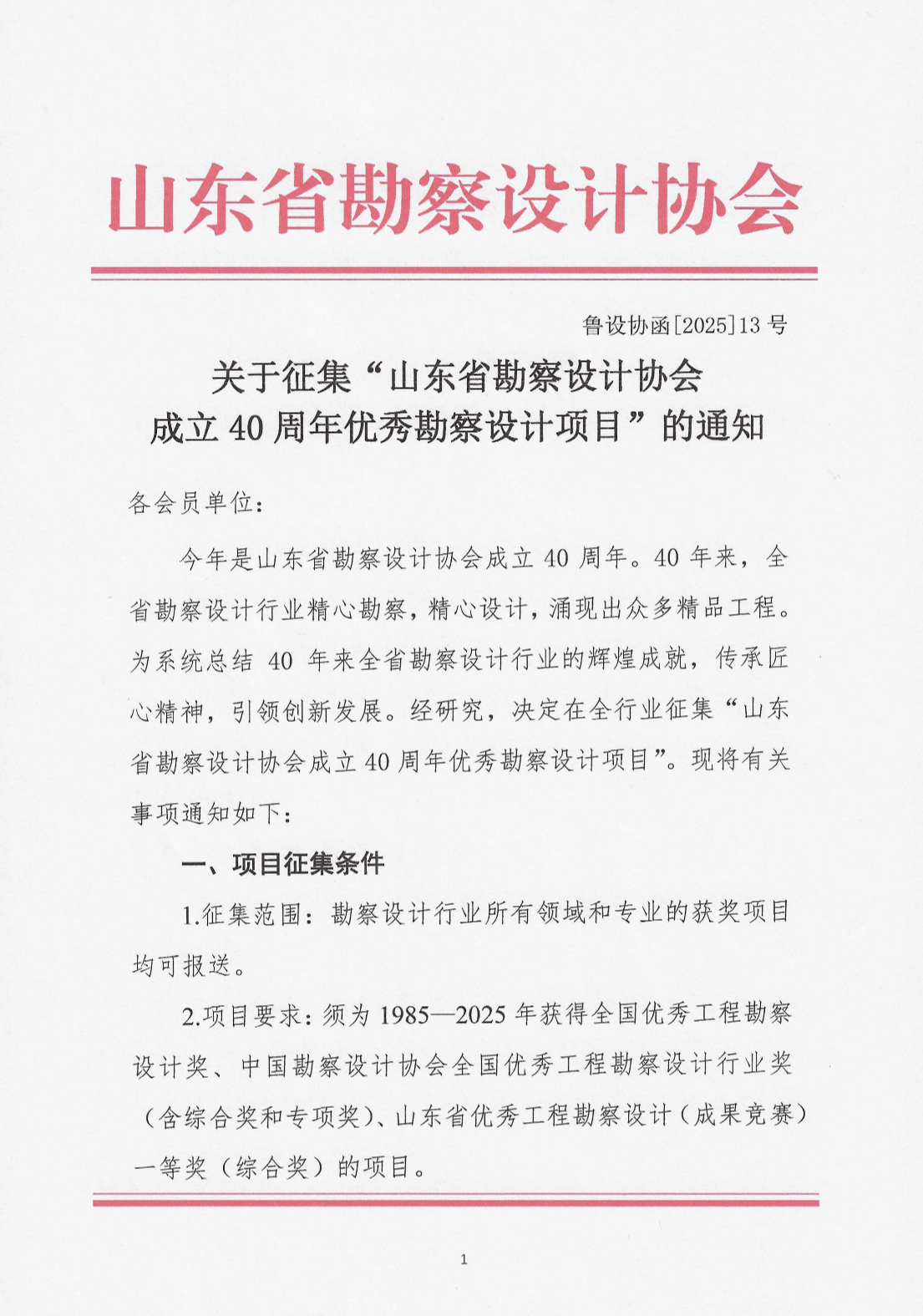 關于征集“山東省勘察設計協會成立40周年優秀勘察設計項目”的通知