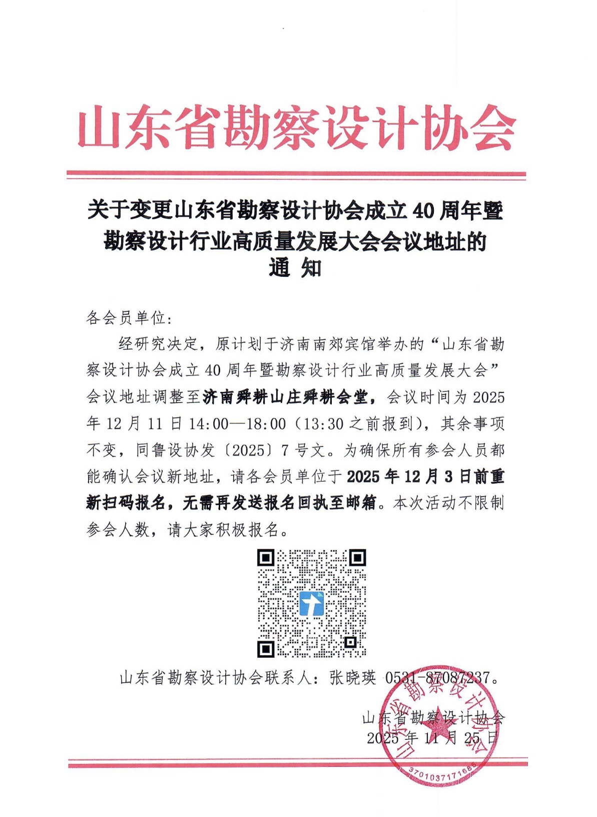 附件:關于變更山東省勘察設計協會成立40周年暨勘察設計行業高質量發展大會會議地址的通知