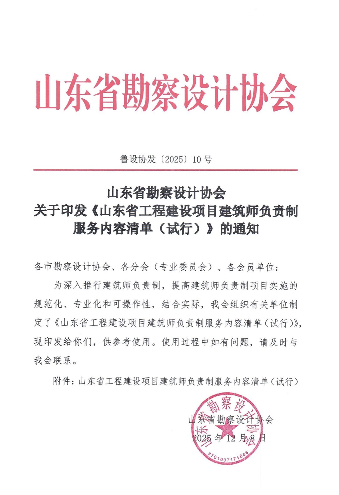 山東省勘察設計協會關于印發《山東省工程建設項目建筑師負責制服務內容清單(試行)》的通知