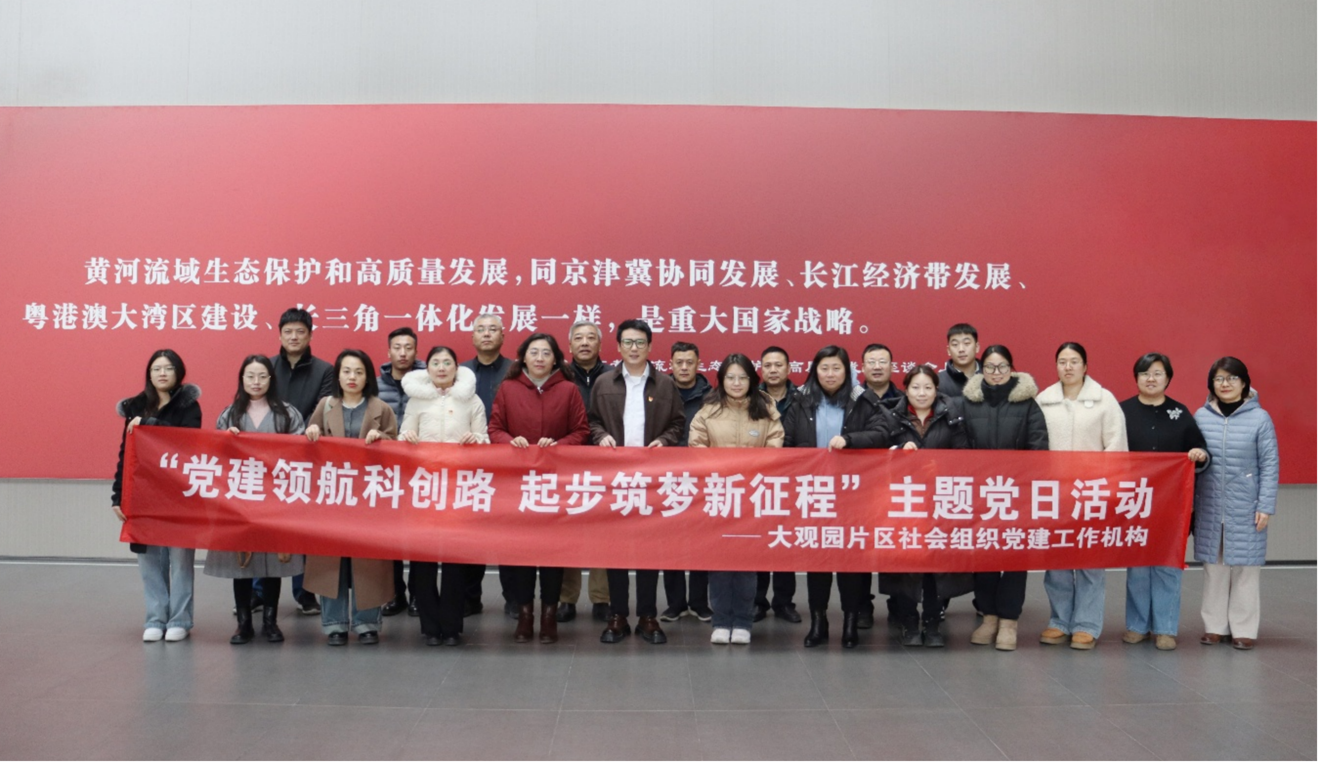 為深入學習貫徹習近平總書記關于科技創新、城市建設與綠色發展的重要論述,全面落實黃河流域生態保護和高質量發展國家戰略,牢固樹立創新驅動、生態優先的發展理念,推動黨建工作與住建事業深度融合,2026年2月5日,山東省勘察設計協會黨支部同大觀園片區黨建工作機構所屬17個社會組織黨支部黨員代表共赴濟南市新舊動能轉換起步區開展“黨建領航科創路·起步筑夢新征程”主題黨日活動。