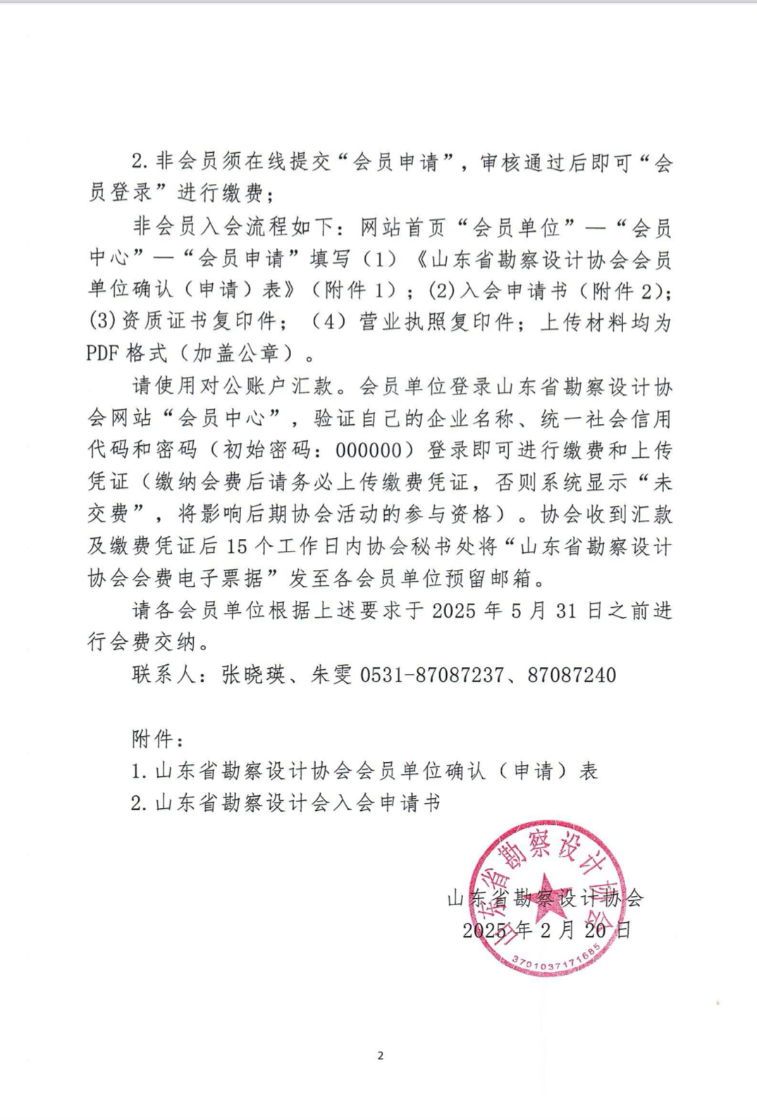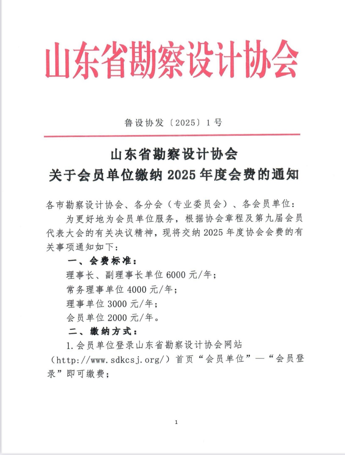 山東省勘察設計協會關于會員單位繳納2025年度會費的通知